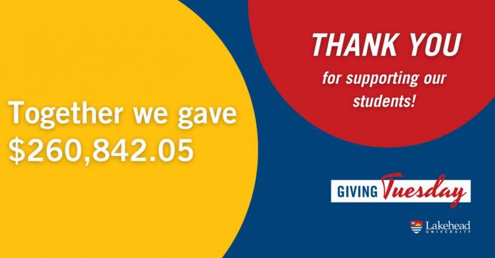 Lakehead University officials were once again celebrating the amount of support that students received for financial aid on Giving Tuesday.