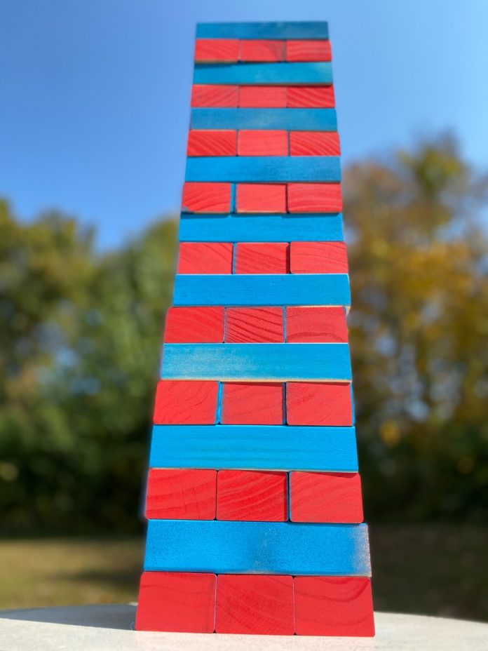 Once, during the pandemic, Sammy was at her best friend’s house for a game night. She saw a giant 54-piece 2×4 Jenga set which she thought would look cooler if it were painted. She decided to paint it such that the dare/prompts for the Truth-and-Dare round would be hidden on the underside of each piece. She painted the set for the game night and it was a complete success.