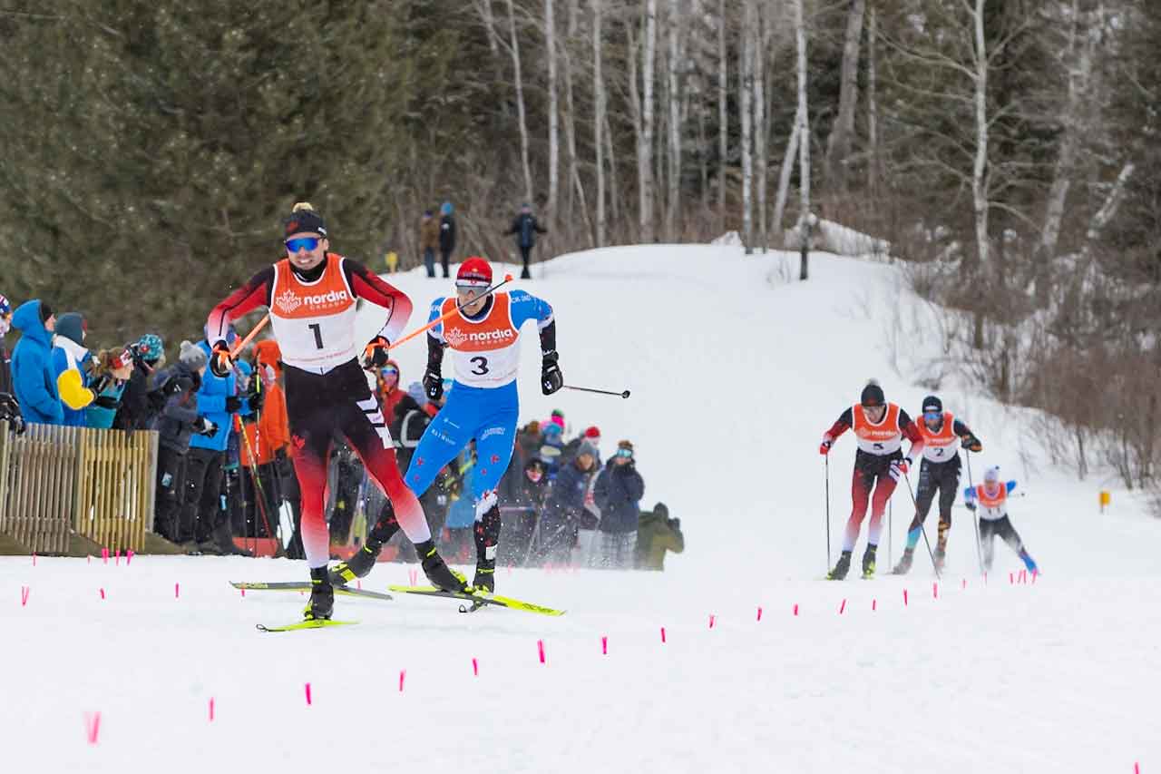 Meanwhile, in the Open Men’s 1.3 km sprint, Leo Grandbois from Orford, PQ, beat Julien Locke from Black Jack, BC, for the gold medal, with Sasha Masson from the Whitehorse Ski Club, YT, taking bronze. NTDC/LU skier Erikson Moore from Fondeurs-Laurentides, PQ, came in fourth, while Big Thunder Nordic teammates Erik Schlyter (LU) and Nicholas Randall (NTDC) claimed 6th and 10th positions, respectively. NTDC skier Julian Smith from Georgian Bay Nordic, ON, showed true grit by crossing the finish line on one ski after a binding broke on course but still managed to finish 12th. NTDC skier Max Mahaffy from Walden Cross Country, ON, finished in 17th, and Big Thunder Nordic skier Tobias Quinn came in 20th.