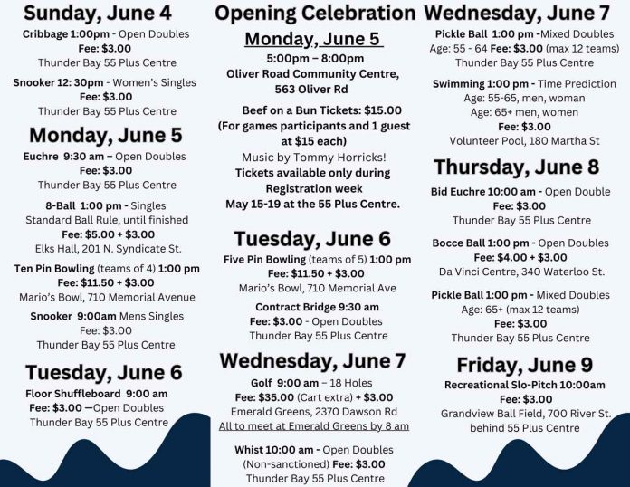 Games will include golf, cards (euchre, cribbage and bridge), bowling, snooker, bocce ball and others. Player registration concluded in early June.