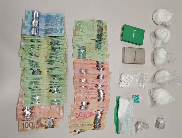 The inquiry unveiled the possession of suspected illicit substances—cocaine, fentanyl, and oxycodone—leading to further discoveries of Canadian currency and items associated with drug trafficking.