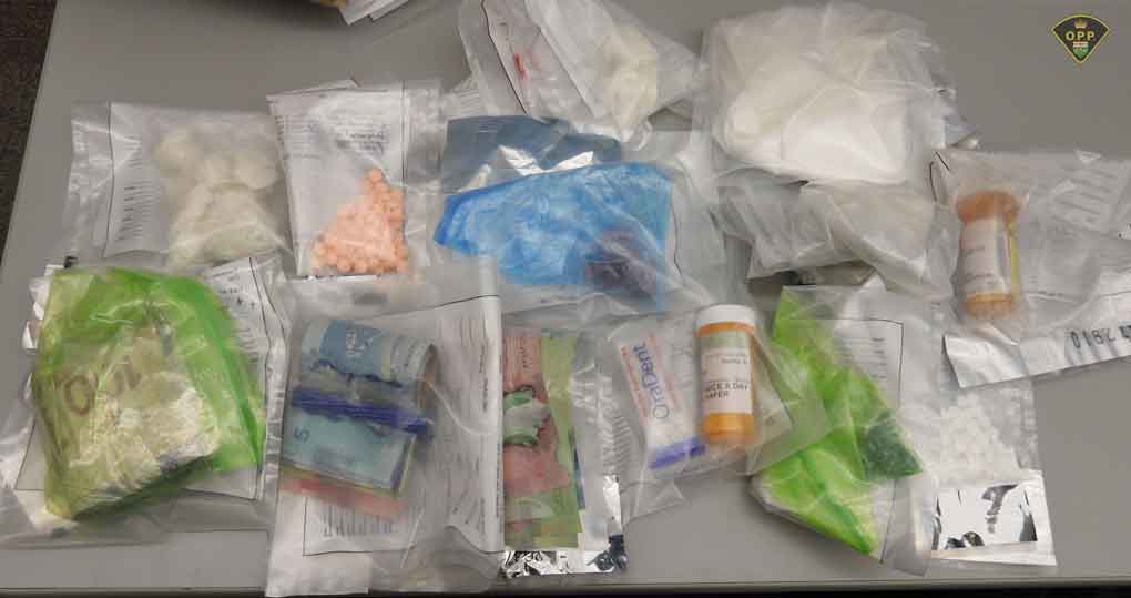 The seized goods include over 19 grams of fentanyl, 110 hydromorphone pills, more than 90 grams of crack cocaine, two cell phones, $3,110 in Canadian currency, and various drug trafficking paraphernalia.