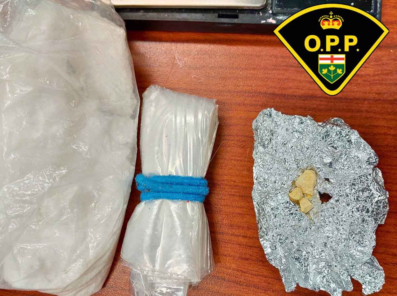 Earlier the same day, at around 3:00 p.m., OPP officers responded to a call regarding an assault that allegedly took place on March 30, 2024. Police located and arrested the suspect. During a search incident to the arrest, officers discovered substances suspected to be methamphetamine.