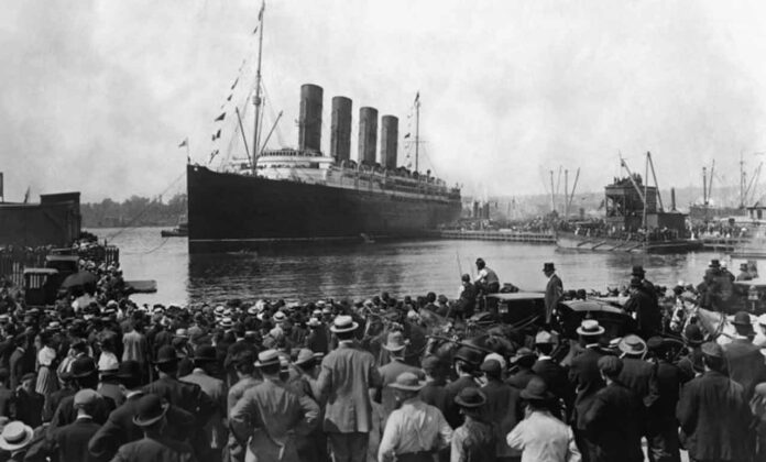 Her four engines rumbled into life like some ancient beast waking from slumber, sending gentle ripples across the harbour. On board, passengers lined the rails — ladies in feathered hats, gentlemen in morning coats — waving white-gloved hands and handkerchiefs to the assembled throng below. The ship moved with surprising grace, her 46,000 tons cutting cleanly through the water as if drawn forward by destiny itself.