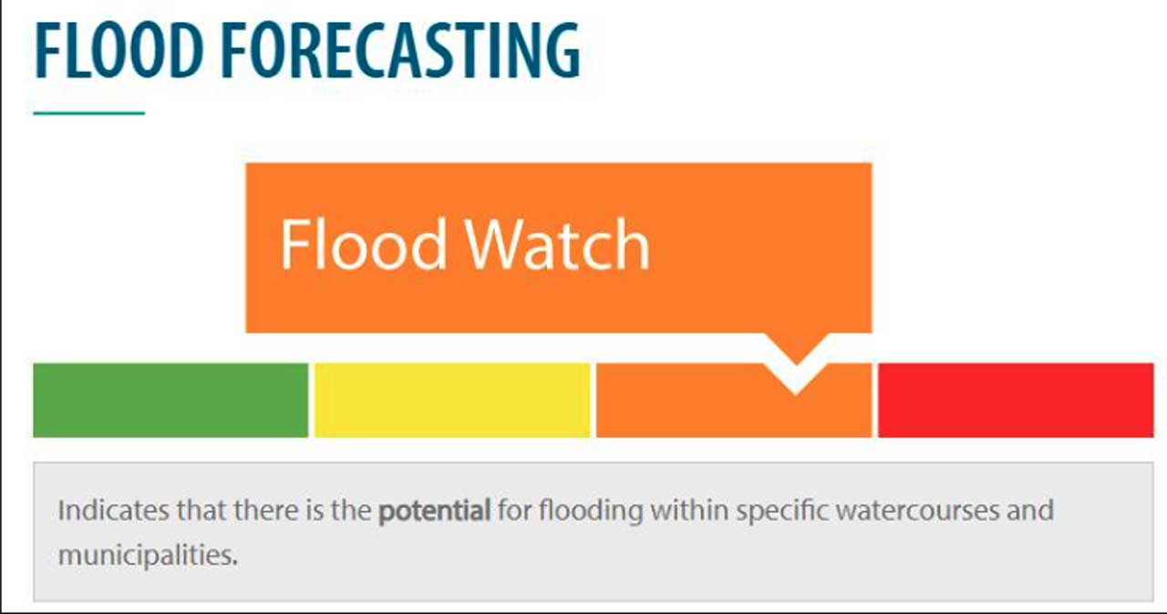 A Flood Warning is issued when flooding is occurring or imminent. Staff will continue to monitor conditions as part of its flood forecasting and warning program and provide updates as warranted.