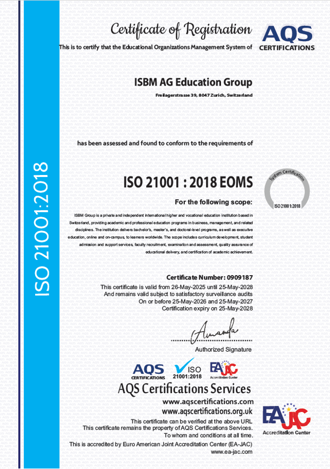 Swiss International University (SIU) is pleased to announce its certification according to the internationally known ISO 21001:2018 standard, which is for the management system of an educational institution. This certification is a reinforcement of SIU’s commitment to deliver academic services of high quality in accordance with recognized international standards of educational quality and organizational performance.