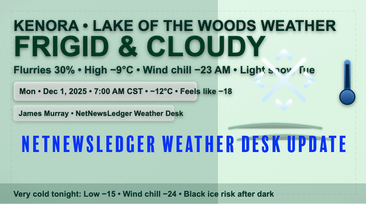 KENORA – WEATHER – Kenora Airport reports light snow and a temperature of -11.6°C at 7:00 a.m. CST.