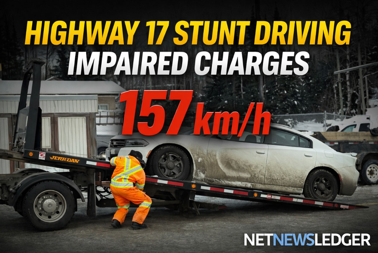 Police report that on January 3, 2026, at about 11:00 a.m., officers with the OPP Nipigon Detachment responded to multiple complaints of a vehicle being driven aggressively at high speed on Highway 17. The vehicle was located and confirmed by RADAR to be travelling 157 km/h in a posted 90 km/h zone.