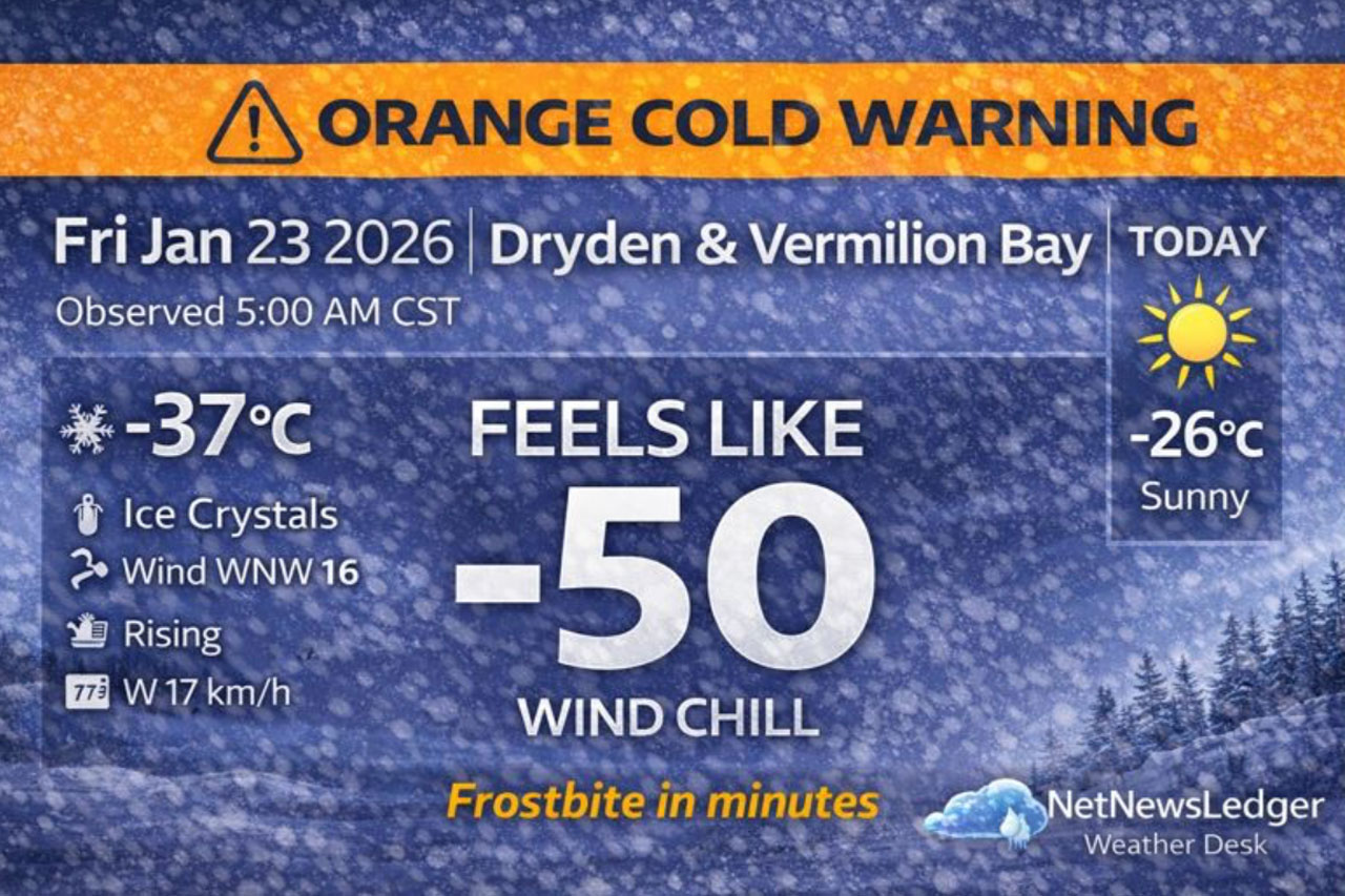 Previous articleJanuary 23, 2026: Kenora & Lake of the Woods Weather Forecast — Orange Cold Warning as Wind Chills Hit -48
