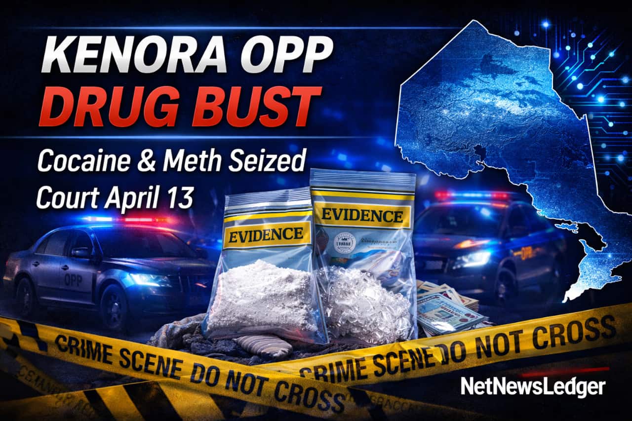 Police report that on Friday, February 20, 2026, members of the Kenora OPP stopped a vehicle they described as suspicious. With assistance from the OPP Community Street Crime Unit (CSCU), the vehicle was searched and officers seized suspected cocaine, suspected methamphetamine, Canadian currency, a cellphone, and drug paraphernalia.