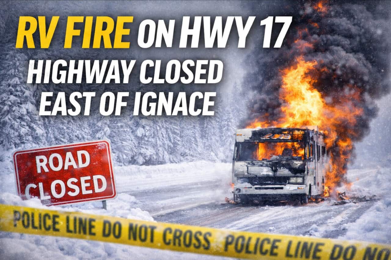 IGNACE, ON — Ontario Provincial Police are advising drivers that Highway 17 is closed in both directions about 25 kilometres east of Ignace due to an RV fire.
