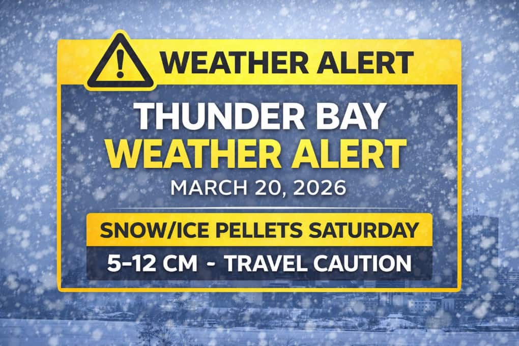 Thunder Bay weather forecast for March 20, 2026: Environment Canada has issued a Special Weather Statement warning of 5 to 12 cm of snow Saturday, reduced visibility, and a risk of freezing rain along Lake Superior.