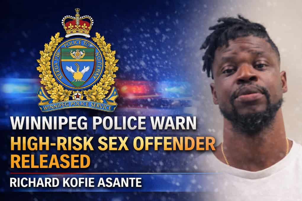 The Manitoba Integrated High Risk Sex Offender Unit, a joint unit of the Winnipeg Police Service and RCMP, said Asante was released from Stony Mountain Institution on April 2 after serving part of his sentence. Police said he had previously been released on statutory release on July 9, 2025, before that release was revoked on Dec. 2, 2025. Under the Corrections and Conditional Release Act, federal offenders are generally entitled to statutory release after serving two-thirds of a sentence, and they remain under supervision while in the community. The law also allows statutory release to be suspended or revoked to protect society or respond to breaches.