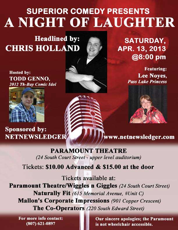 For more information visit www.superiorcomedy.com or call (807) 621-0897
